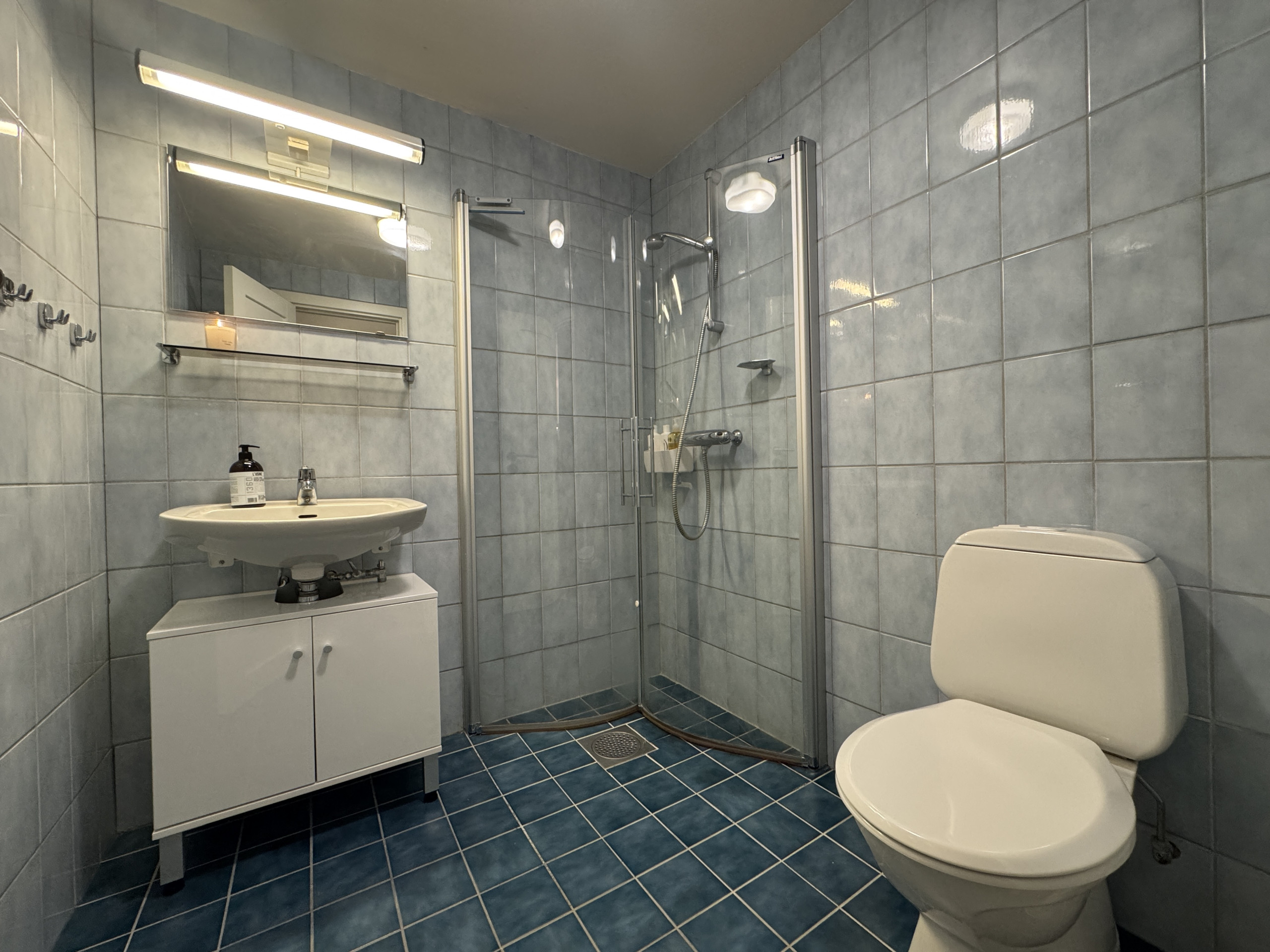 - Tiled bathroom with shower corner and underfloor heating