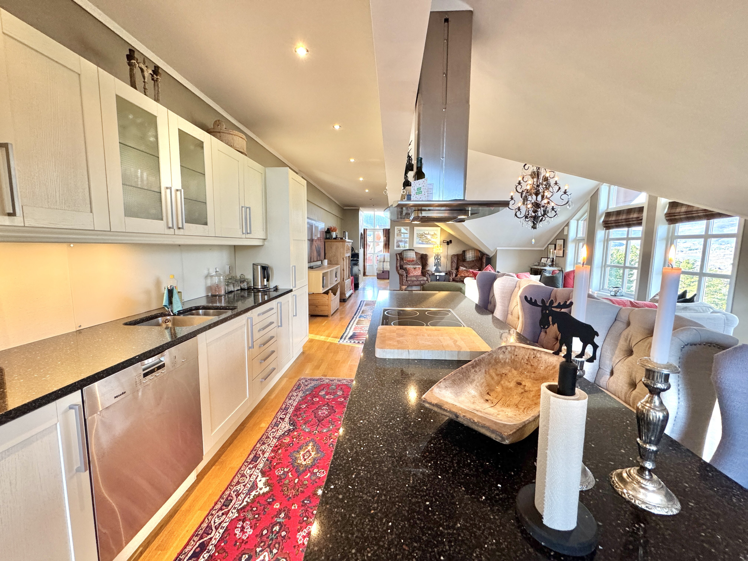 The 137 m2 apartment has 4 bedrooms, 2 bathrooms and a large living room and kitchen in one. Short distance to the center and Vestlia and with plenty of space for 8 guests. The apartment is on 2 levels and has a separate living room / TV room for the children. Come here and experience the magical nature of Geilo. Here you live secluded, but centrally located with a short distance to everything Geilo has to offer.