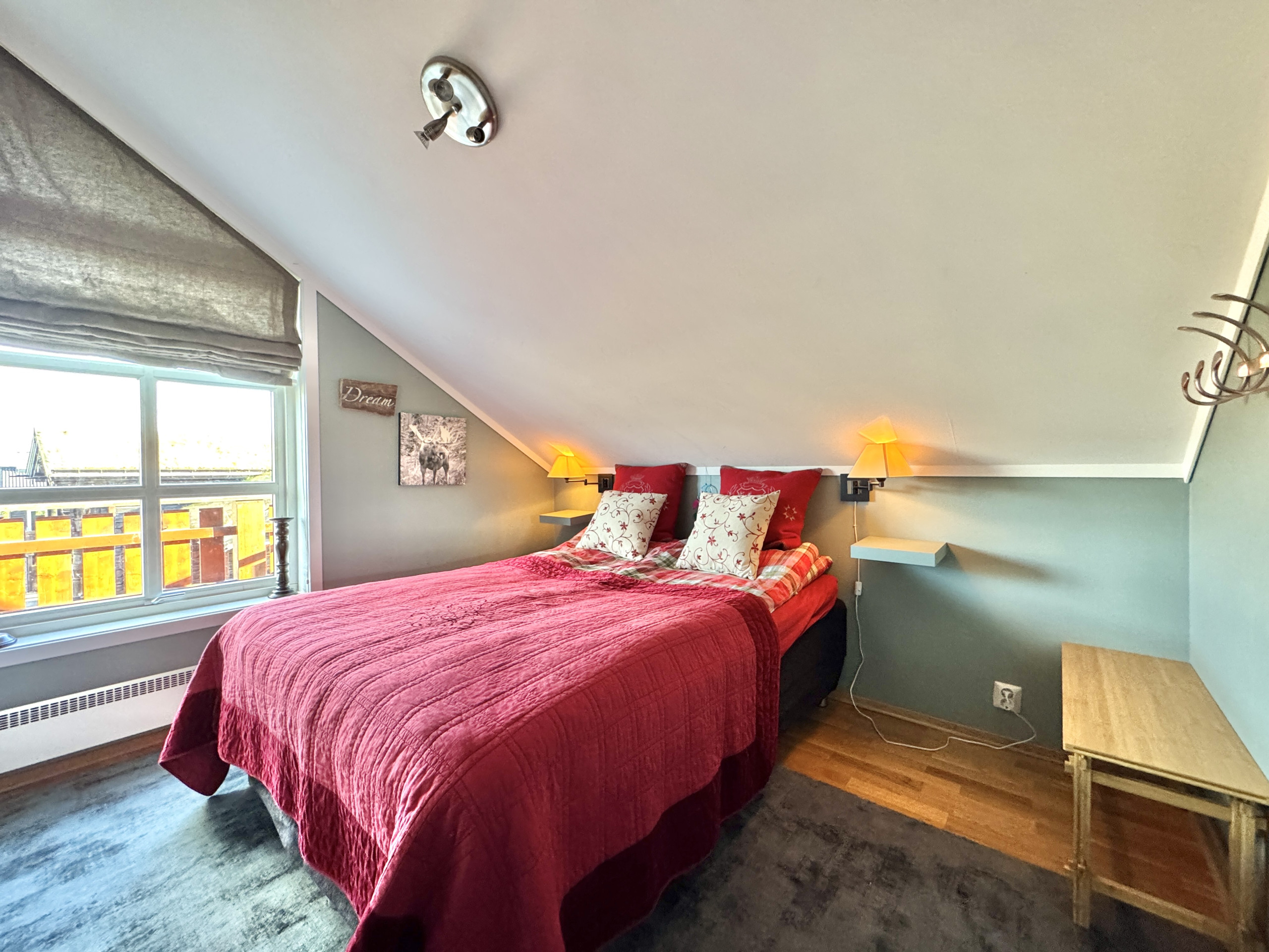 This lovely 84-square-meter apartment is located at Kikut in Geilo. The ski slope is nearby, and there is easy access to fantastic ski trails. The location is impeccable with views of beautiful mountains. The apartment is tastefully decorated with an open living room and kitchen, gas fireplace, 4 bedrooms accommodating up to 8 people, 1 bathroom with WC and shower, and an additional toilet. Two terraces provide both morning and afternoon sun. Indoor parking and electric car charger are available. 🚗⚡