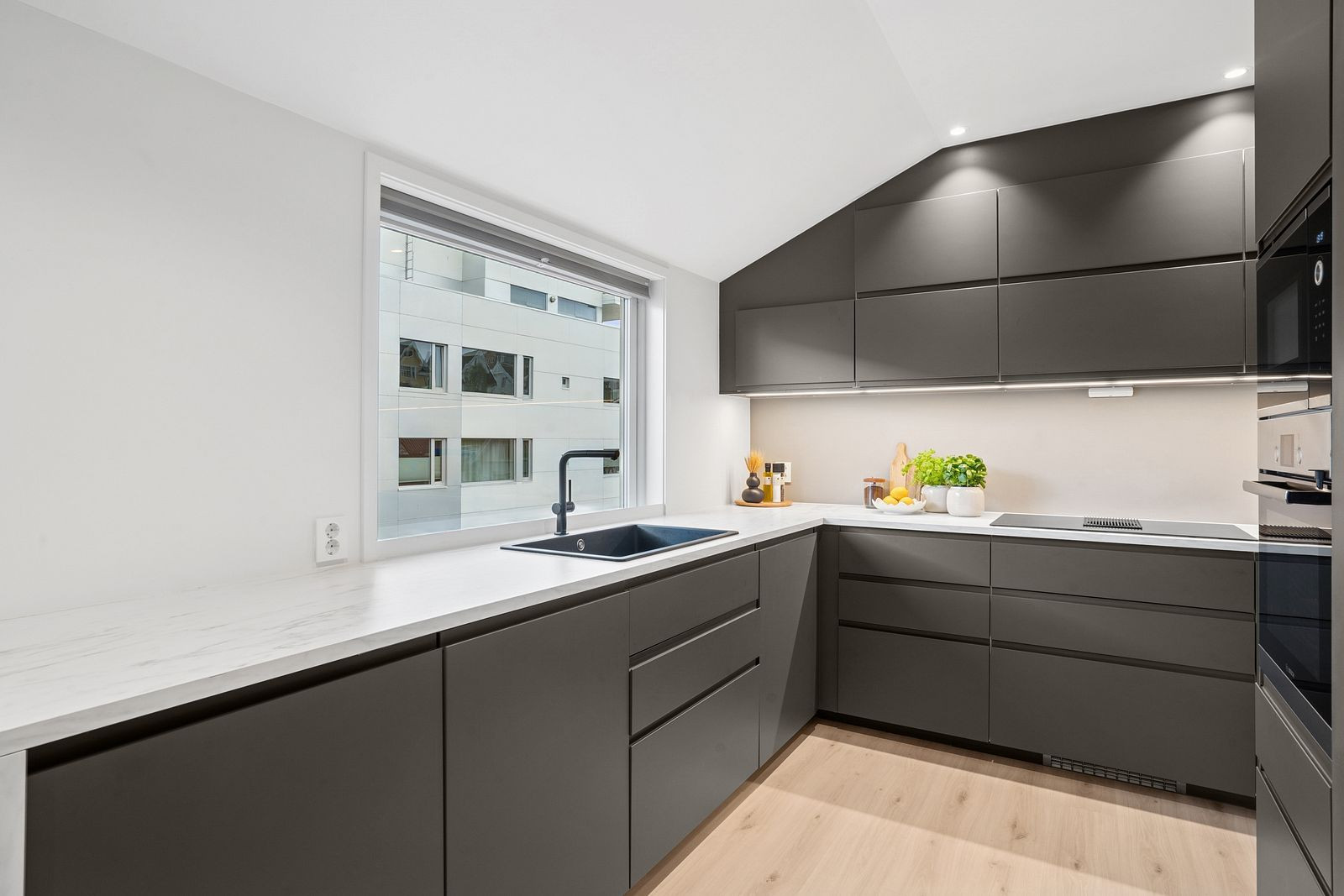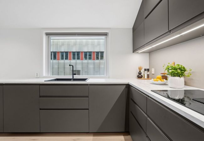 Enjoy your morning coffee on the private balcony with a beautiful view, or unwind in the modern and elegantly furnished living area after a day in the city. You'll be staying centrally, within walking distance to restaurants, culture, shopping, and the waterfront.