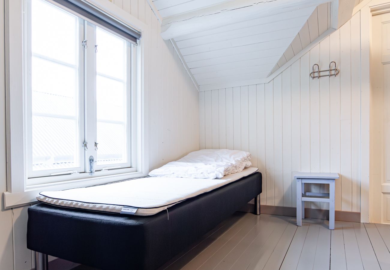 The tiled bathroom comes with a shower and a convenient washing machine. With WIFI and TV, you have both entertainment and connection to the rest of the world, even as you're surrounded by the beautiful nature of Tind. Welcome to an unforgettable experience in our charming rorbu.