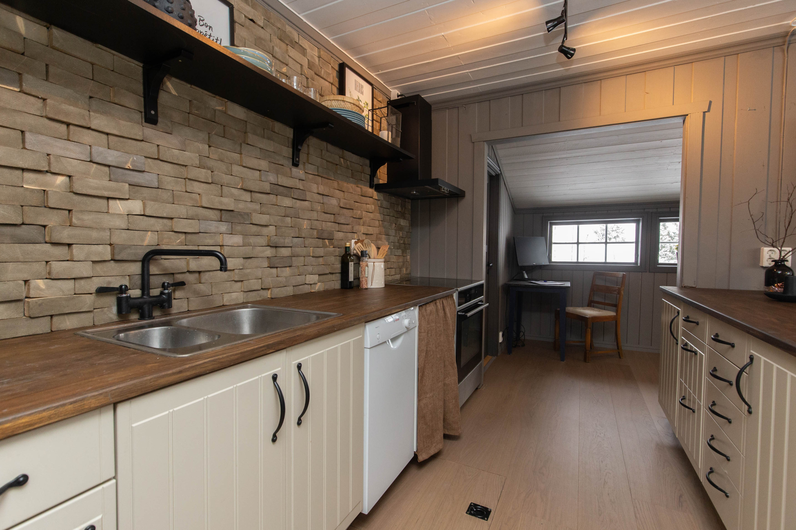 The cabin is newly renovated, covering 96 m², and offers a warm and inviting atmosphere. The veranda provides a great outdoor space for relaxing with a cup of coffee or enjoying a barbecue on warm evenings.