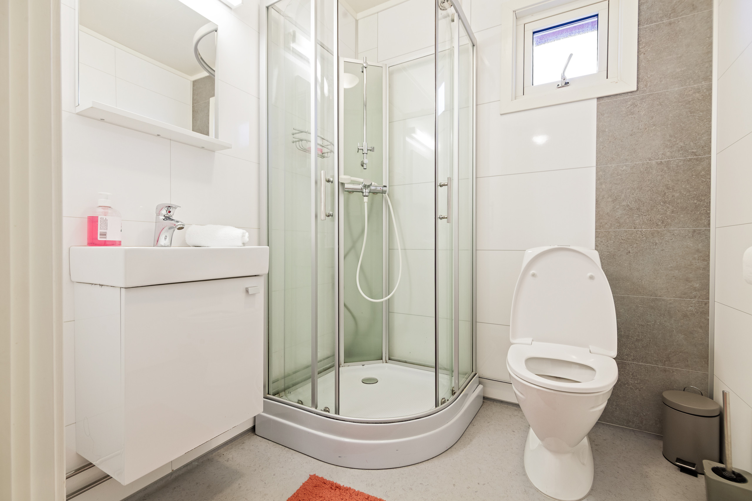 Shared toilets and showers in addition to private facilities in the cabin