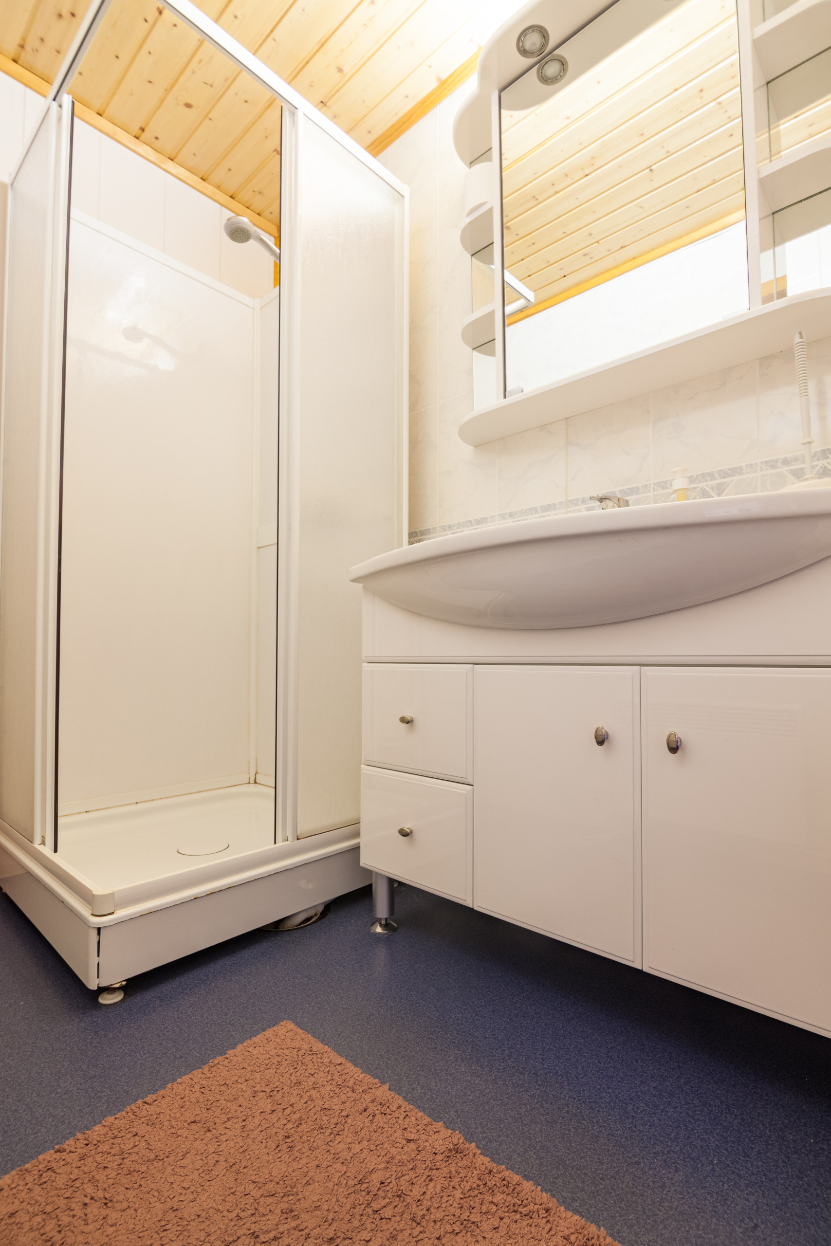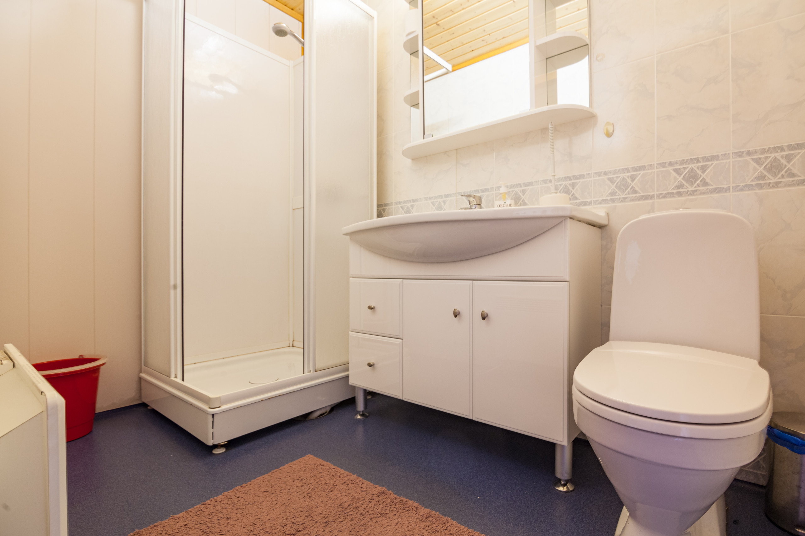 Shared toilets and showers in addition to private facilities in the cabin