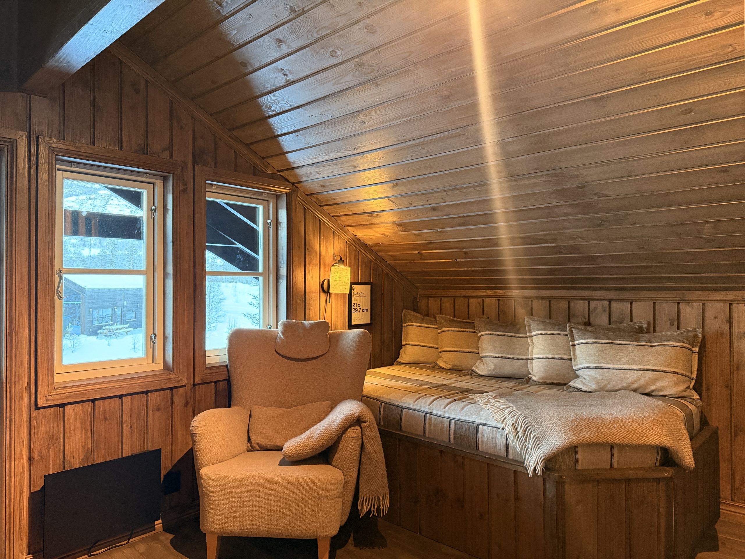 Det er også en ekstra sengeplass i TV-kroken oppe.