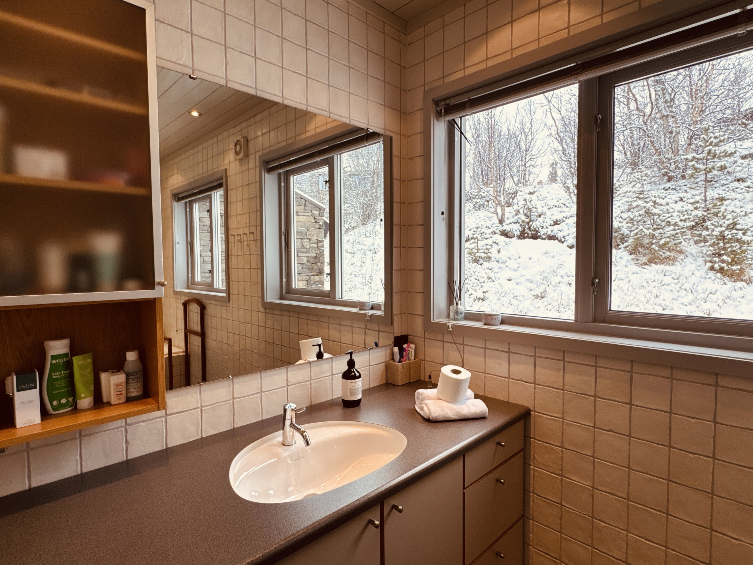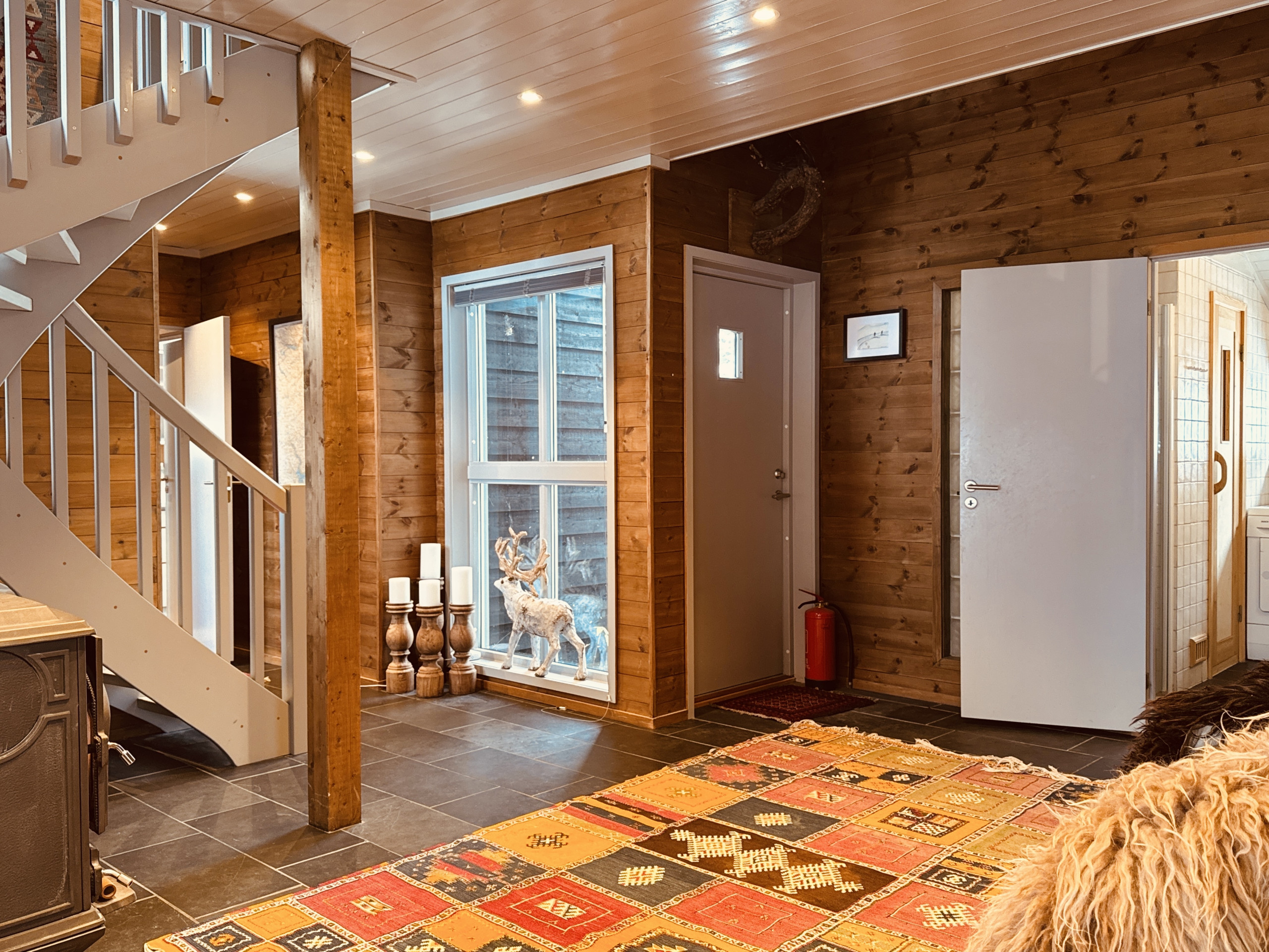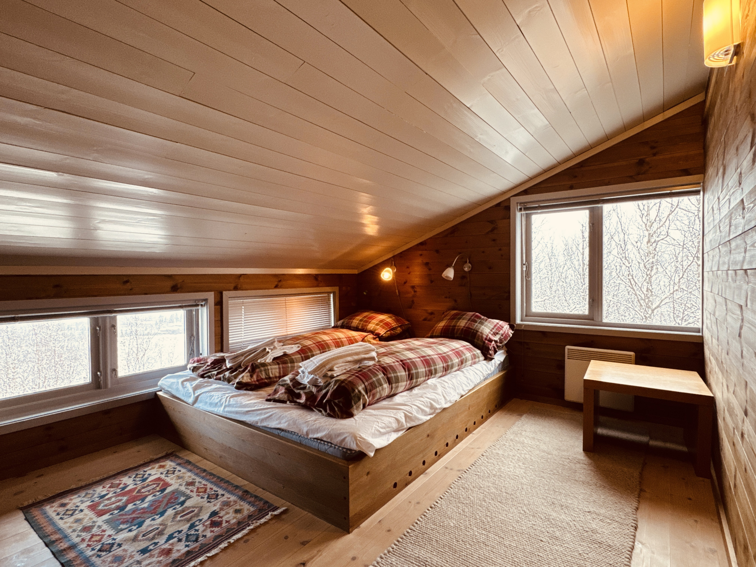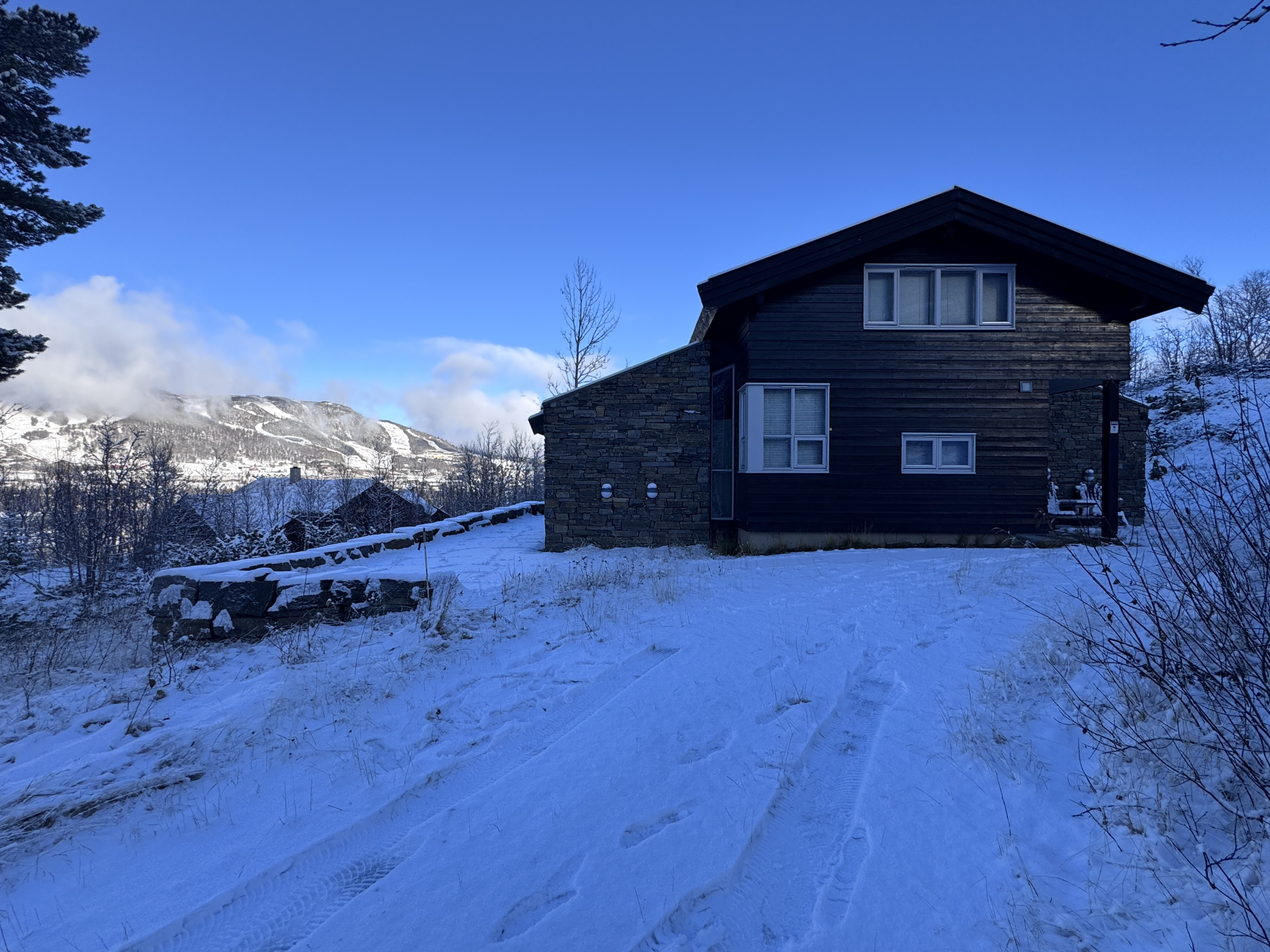 - Parkering: 2–3 plasser rett utenfor (brøytes). EV-lader mot tillegg NOK 300 / opphold (forhåndsbestilles)