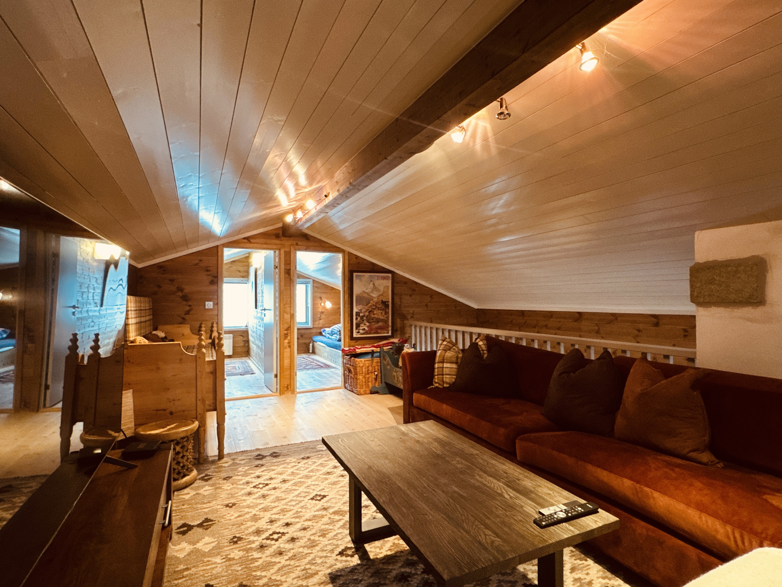 2. etasje: 5 soverom og ekstra TV-stue (stueseng/ekstra soveplass).