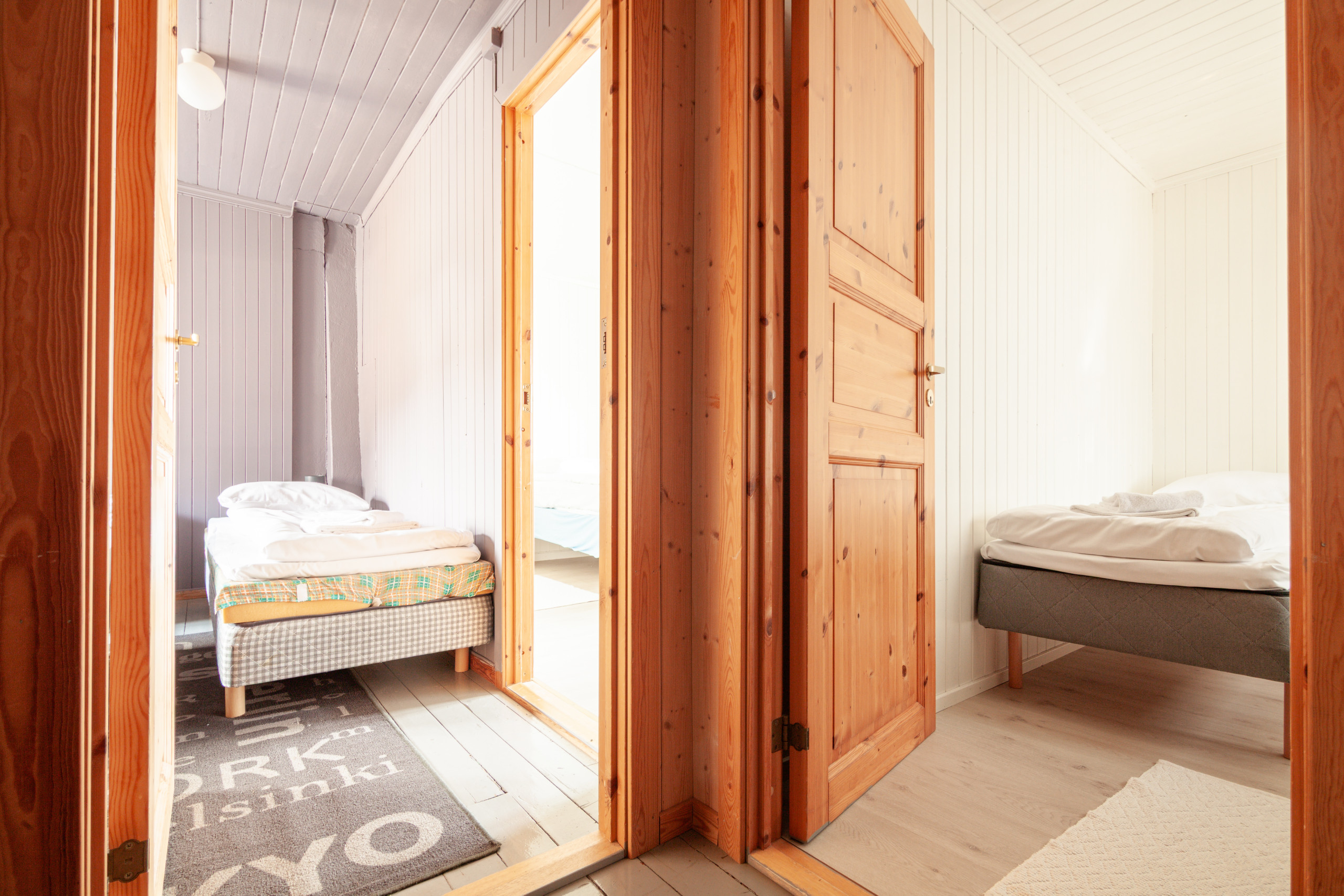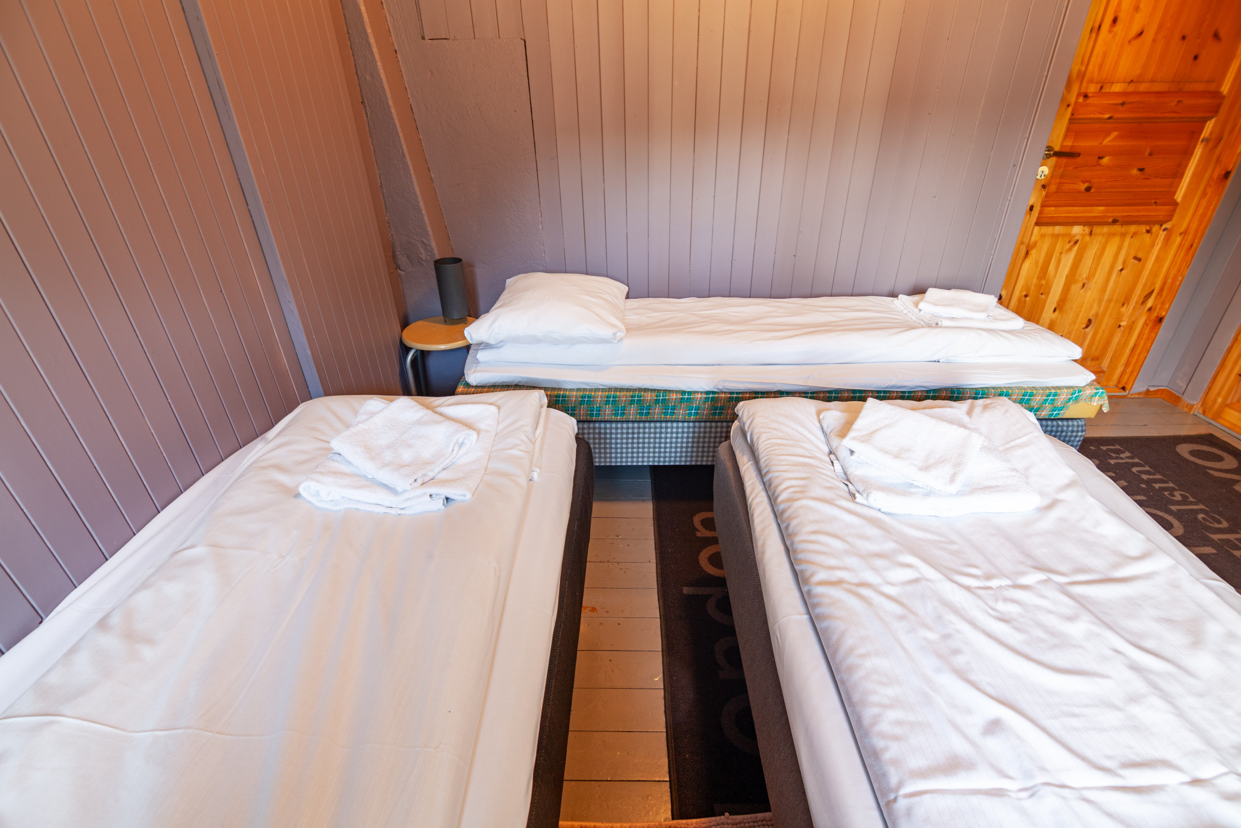 Tre rorbuer med to soverom og loft, som rommer opptil 6 gjester