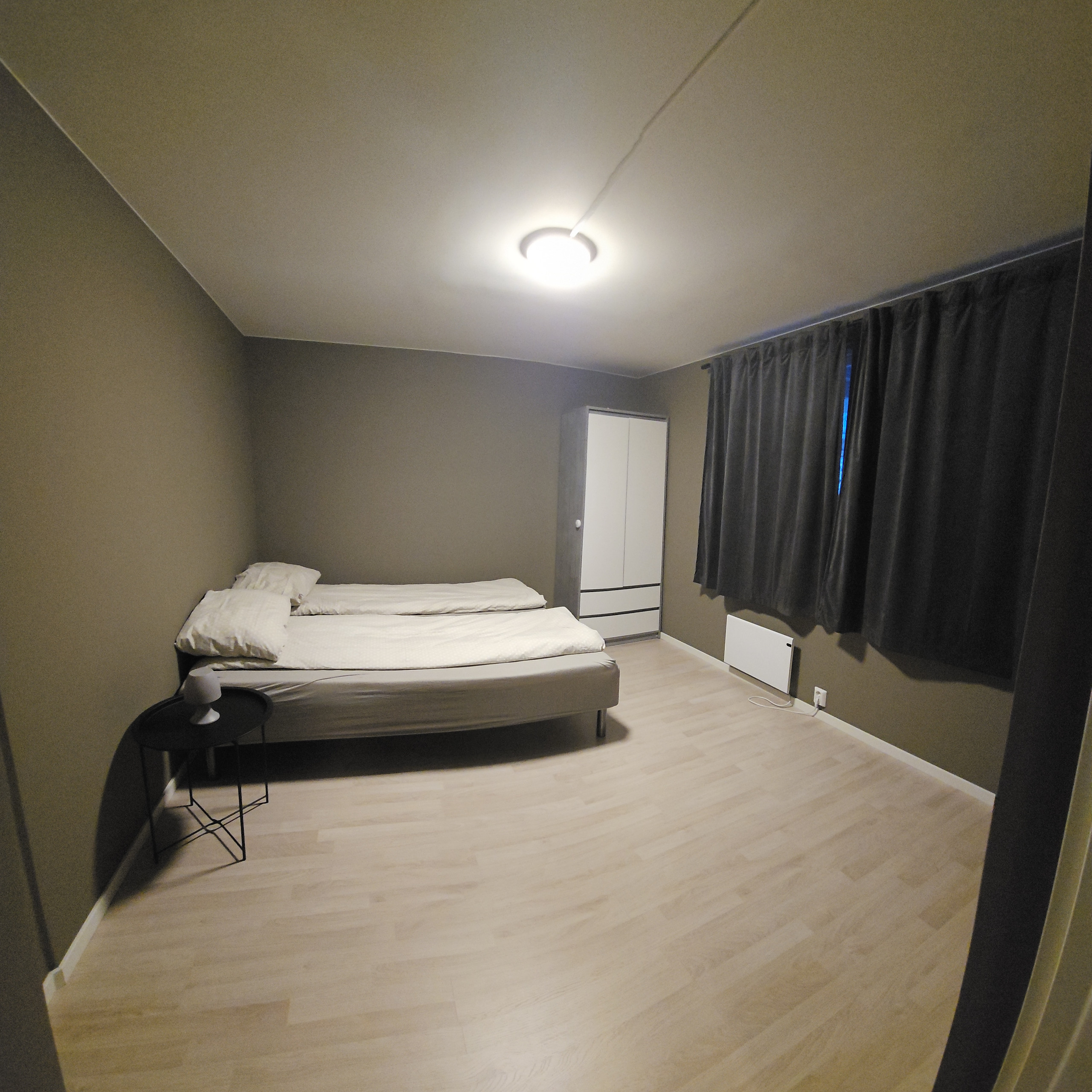 Leiligheten har to soverom, ett med dobbeltseng og ett med enkeltseng, og passer for opptil 3 gjester.