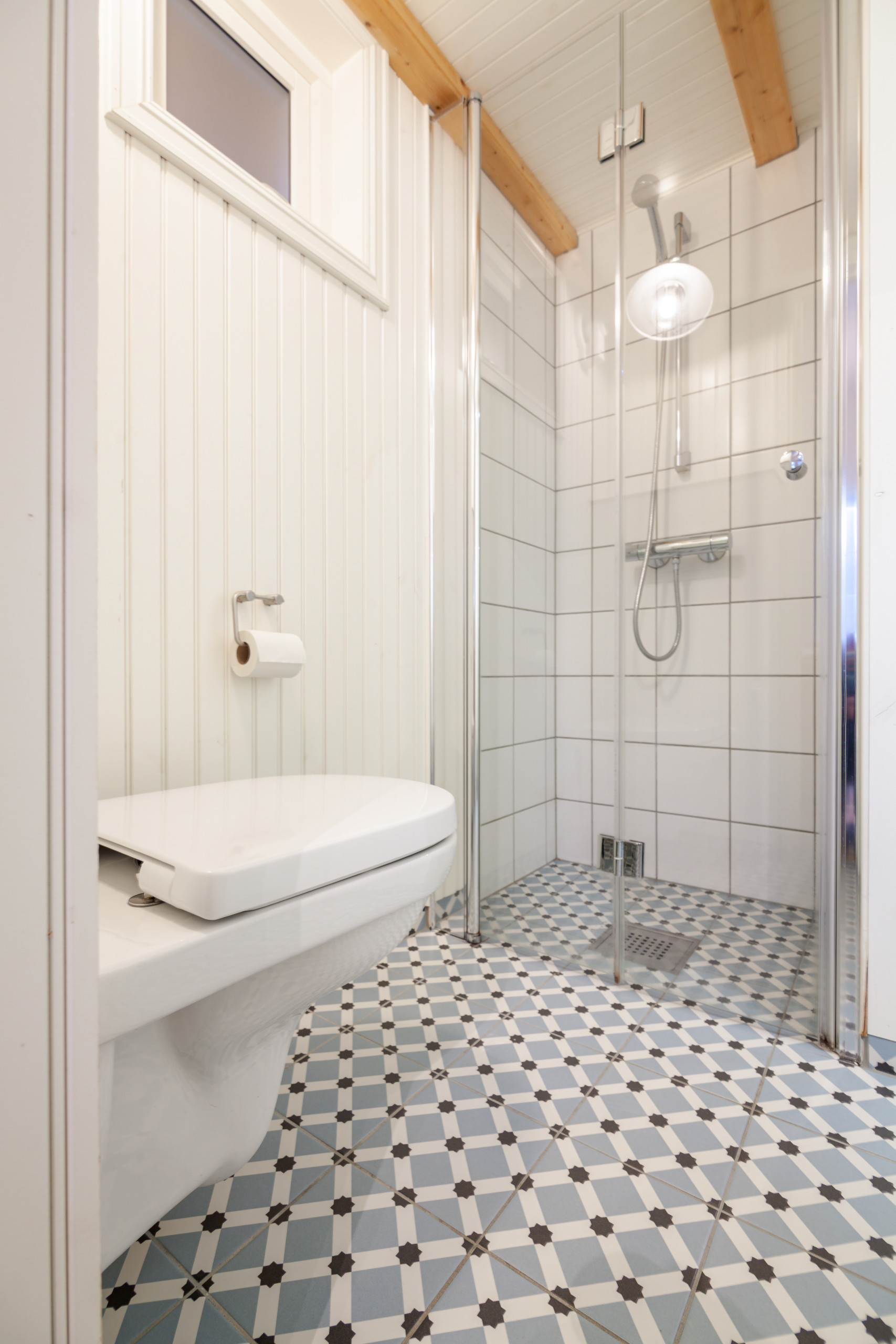 Det er et minihouse så varmtvannsberederen er ikke laget for lange dusjer!