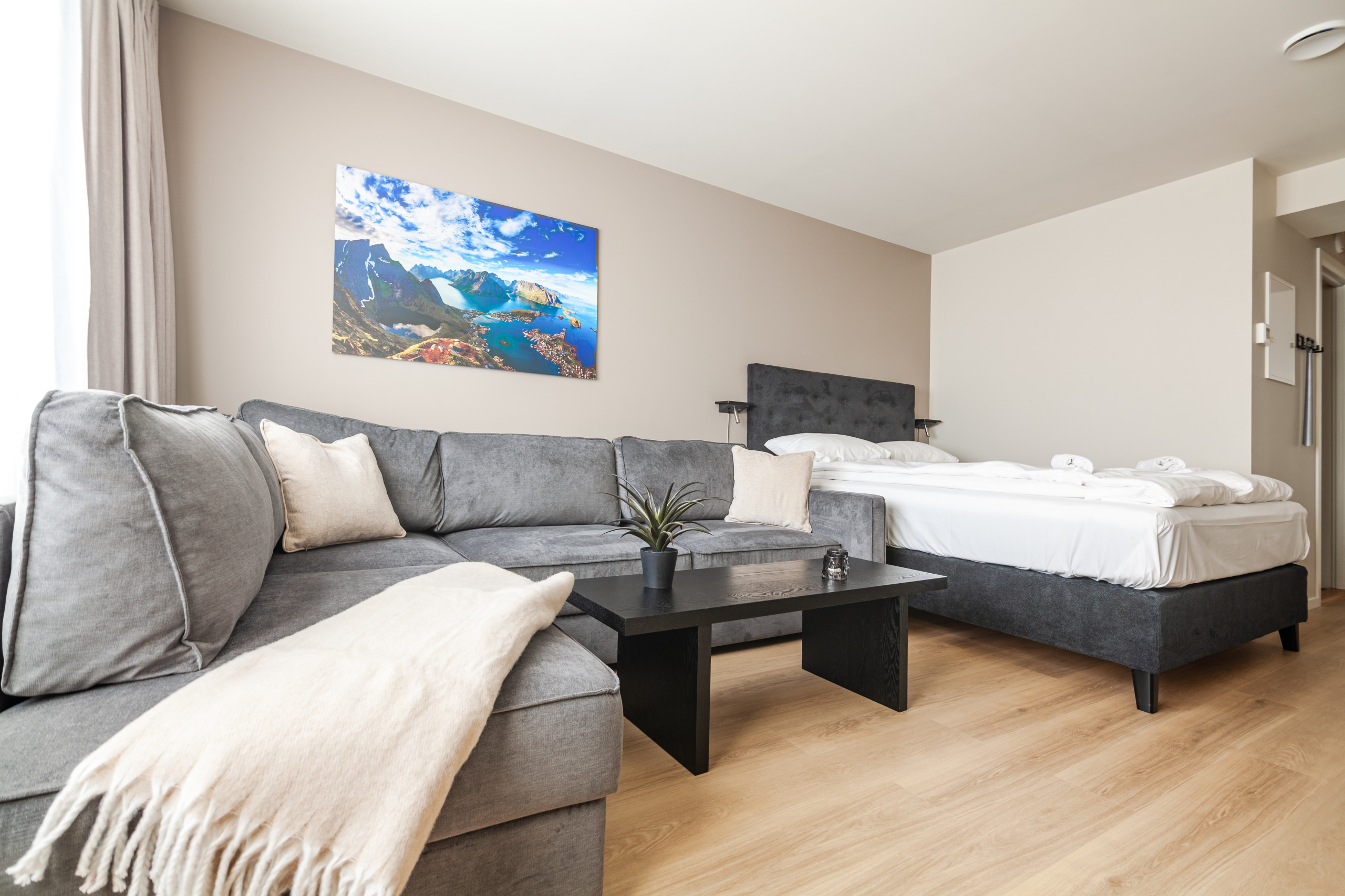 🛏️ Studioet har en separat seng på 150x200 cm og en sovesofa på 150x200 cm. Egnet for opptil 4 gjester.